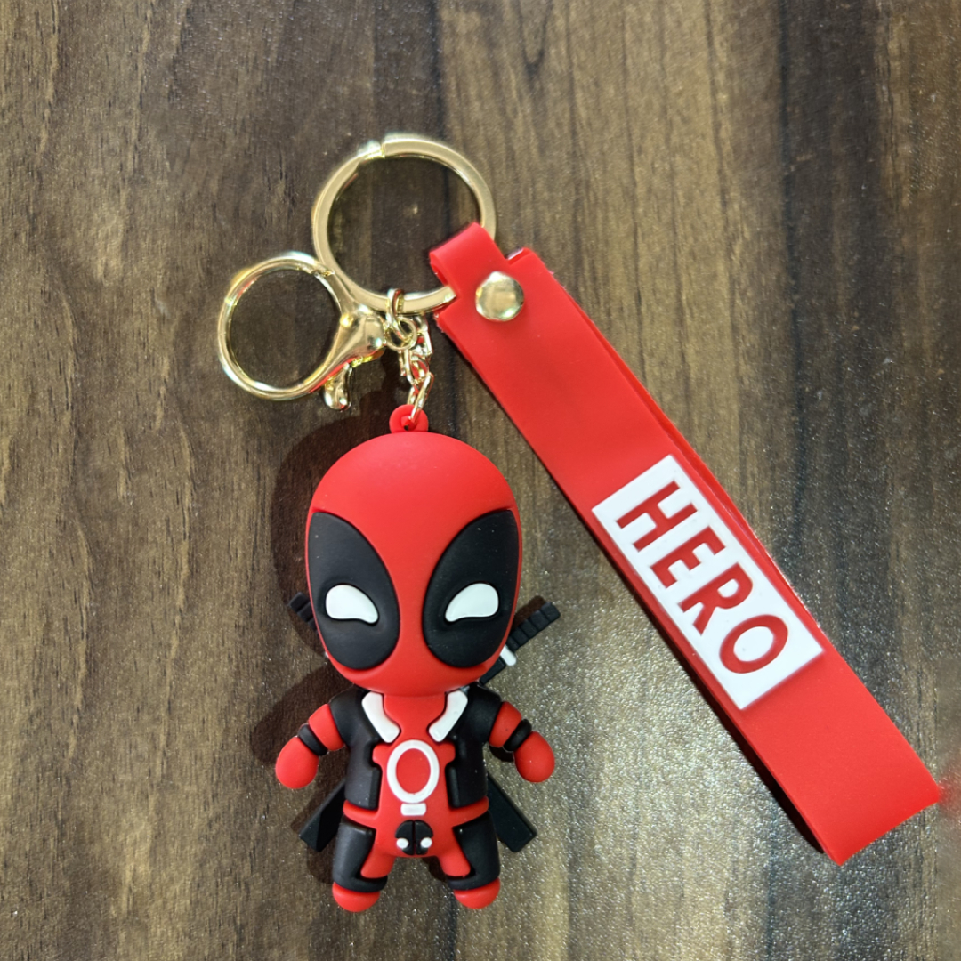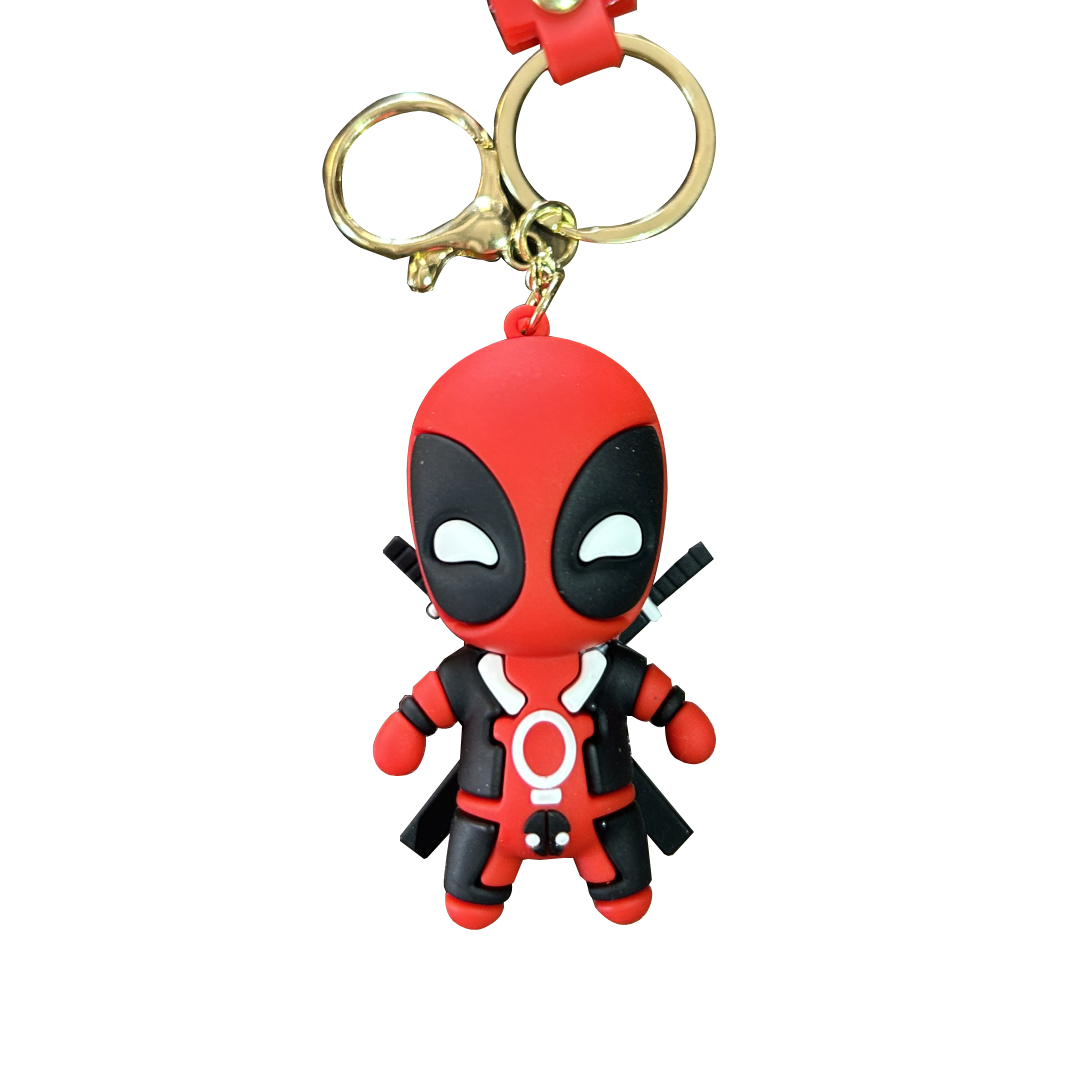 Buy the Deadpool 3D PVC Silicone Keychain made from durable and flexible PVC/silicone rubber. Featuring detailed 3D miniature design with vibrant colors, this lightweight anime keychain is perfect for keys, backpacks, and gifts. A must-have collectible for Deadpool fans and anime lovers.